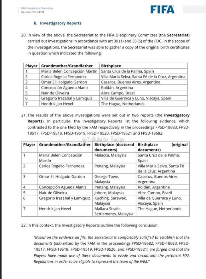 马来西亚媒体披露了前期被处罚的七位球员相关原因,全部是因为大马足协提交的材料篡改了祖辈的出生地,这些人全部出生在海外,但是提交的材料全部被改为马来西亚。冬菇这就不讲故事纯硬上啊?啊?啊?托希尔知道了肯定一脸看傻子的表情